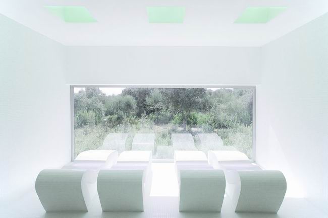 位于西班牙马略卡岛的 Castell dels Hams 酒店泳池改造以及水疗中心设计,来自西班牙的 A2arquitectos 事务所。泳池区域以一系列方形开口的结构覆盖,开口让自然光能够充足射入。水疗中心的位置则为游客带来周围自然景观的良好视点,并在所有需要阳光射入的房间采用与泳池区相同的方形开口元素。设计师如此设计不仅仅是要让新的空间被有效利用,同时它们应起到突出酒店阳光明媚气氛的作用。现已完成的改造中,方形开口之间相互作用,自然光通过不同方向射入,就像在空间中舞蹈一般。