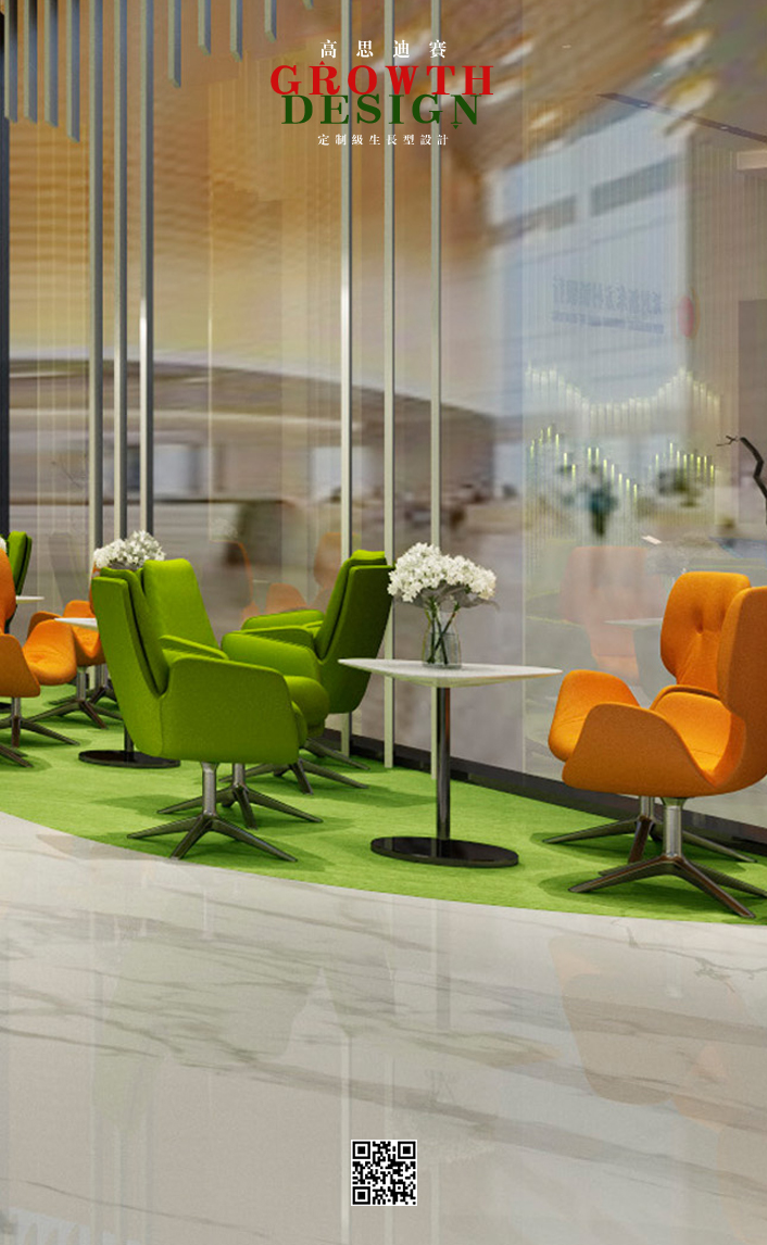 一楼为对外服务大厅,分层次服务的设计理念,以客户为中心,将业务流程和客户习惯结合并融入到服务功能区,进入大厅的瞬间就会被清新的绿意吸引,寓意着服务三农的宗旨以及建设绿色智慧银行的形象,使得现代化的设计理念更加深入人心,以形象的视觉形式宣传企业,与传统银行网点不同的是加入了休闲的元素,融入了水吧、水果饮料吧的区域,更深入从消费者的角度考虑问题。